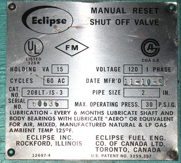 Here are the photos of the Eclipse Gas Valve listed on my equipment for sale page. Clicking on any of the photos will take you back to that page.